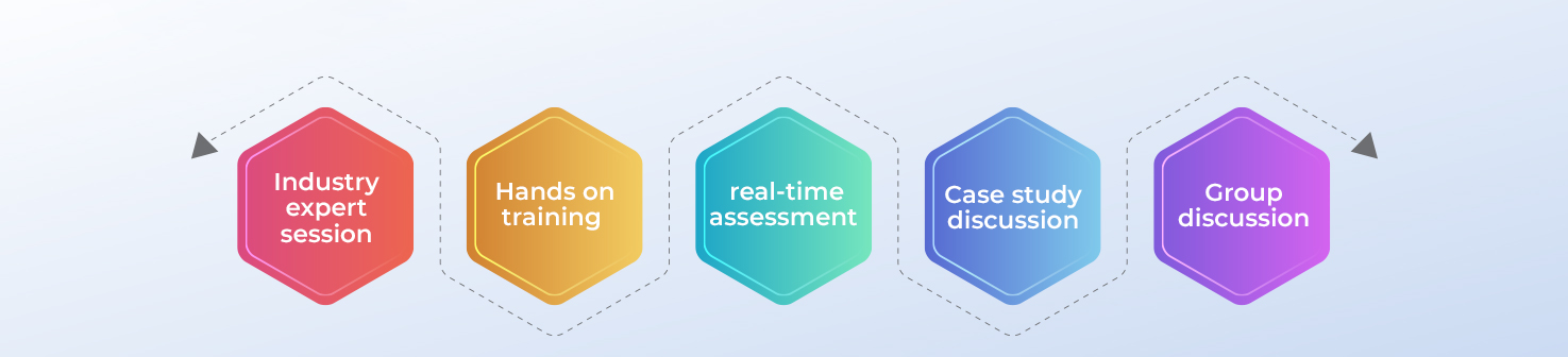 The Experts will give the learners insights about the subject, followed by hands-on training on different tools related to the subject, along with case study discussions and presentations. Post- session the learners will appear for internal and external assessment held on the same day. The score of both assessments will be collectively considered as the final score for the subject.